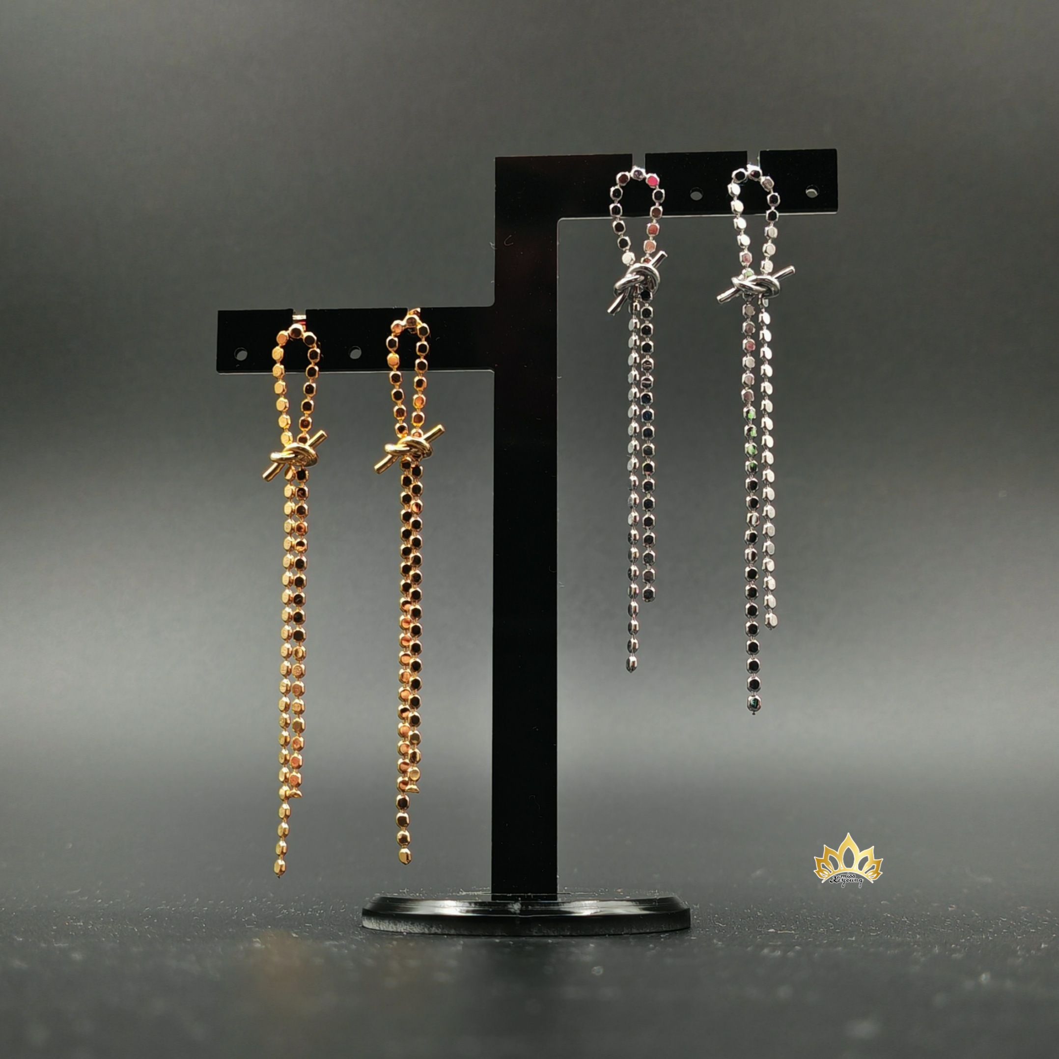 Центральным элементом этих серег становится стильный узел, который придаёт им игривый и современный характер — будто маленький штрих романтики, сплетённый в металле. От него расходятся две длинные, грациозные нити. Они добавят вам уверенности, подчеркнут изящество ваших черт и станут идеальным акцентом к платью, джинсам или даже строгому костюму.