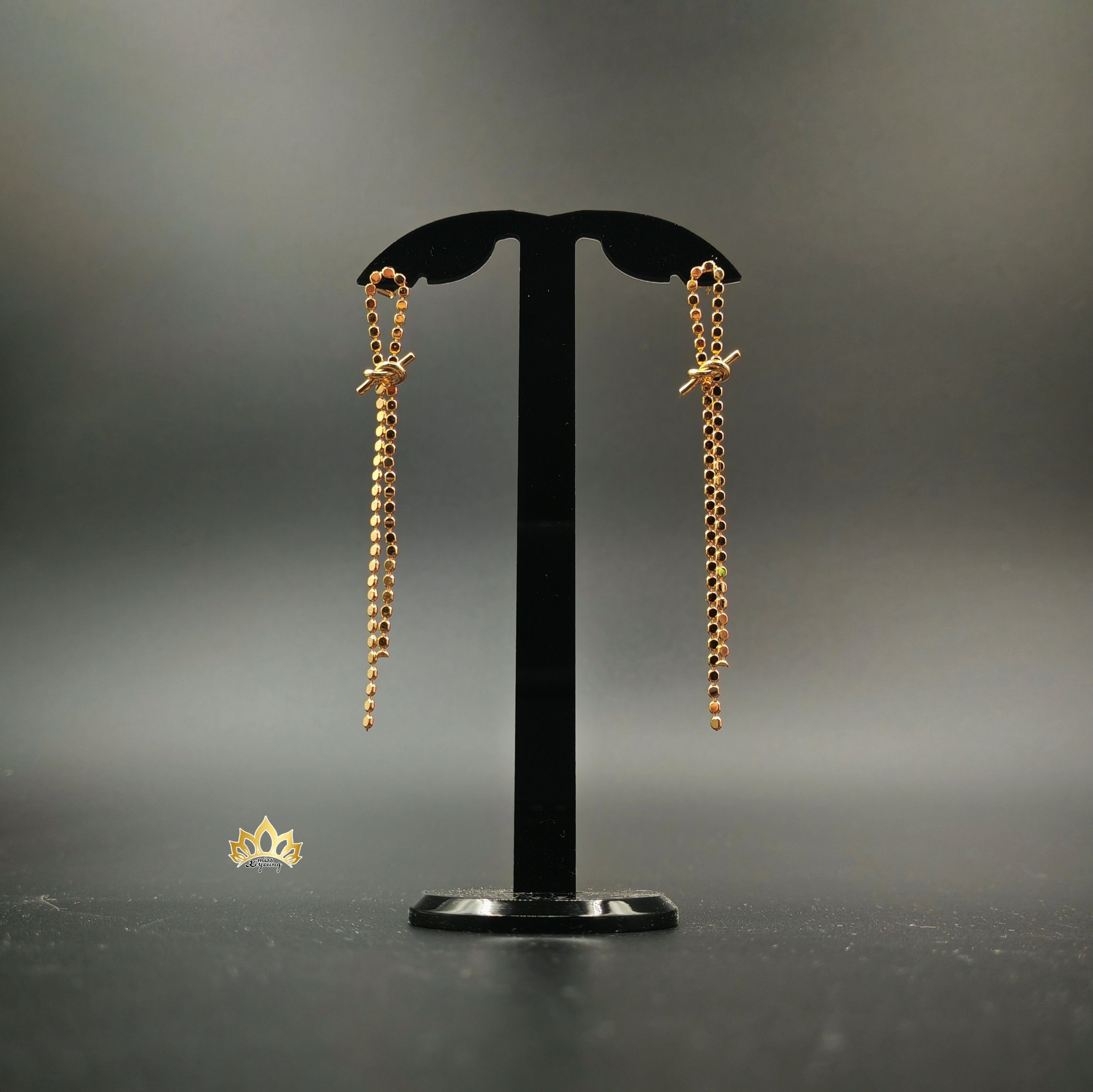 Центральным элементом этих серег становится стильный узел, который придаёт им игривый и современный характер — будто маленький штрих романтики, сплетённый в металле. От него расходятся две длинные, грациозные нити. Они добавят вам уверенности, подчеркнут изящество ваших черт и станут идеальным акцентом к платью, джинсам или даже строгому костюму.