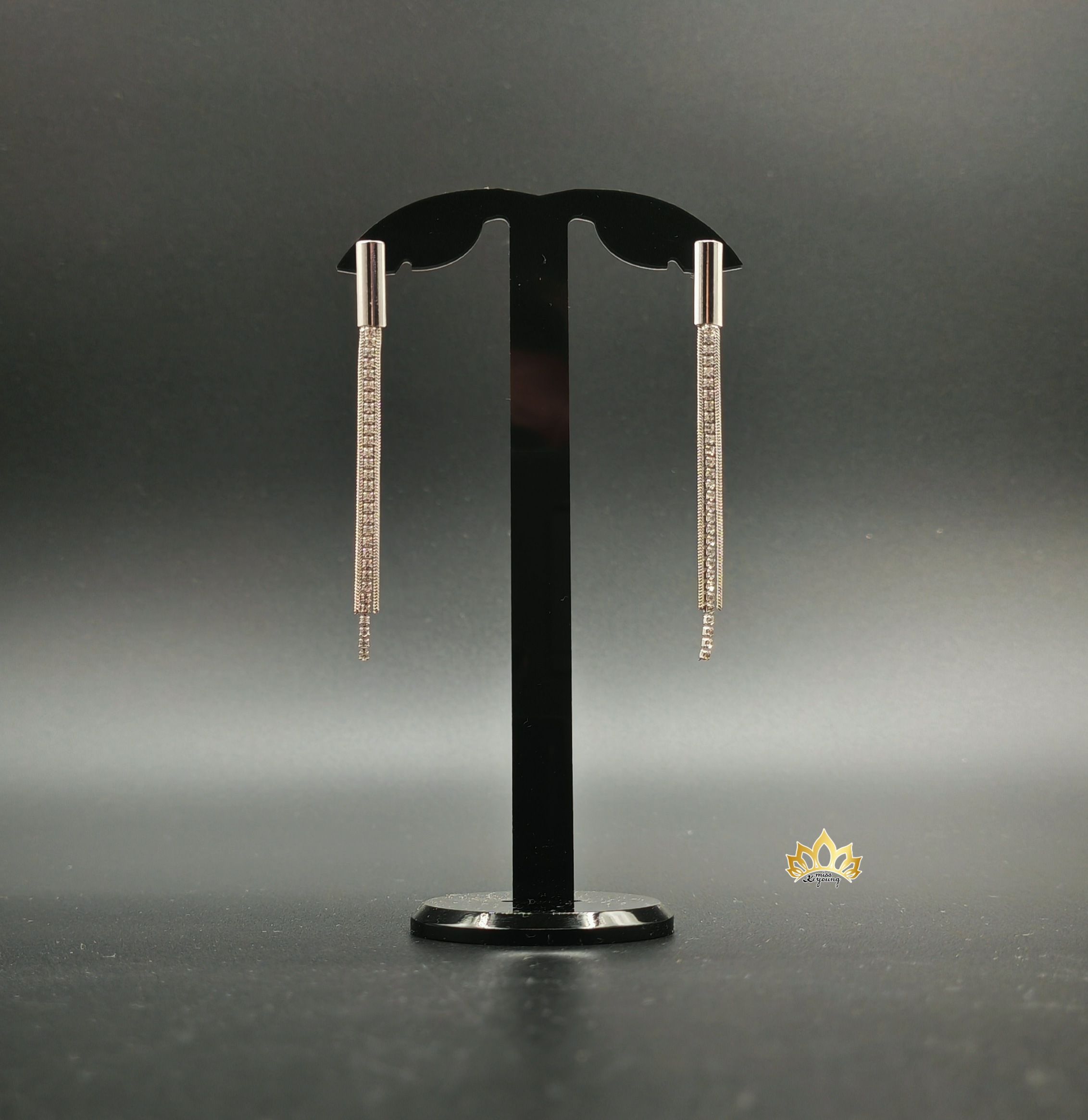 Серьги - дорожки из прямоугольной основы и грациозных цепочек, средняя из которых по всей длине украшена настоящими кристаллами высокого качества, что создаёт ощущение непрерывного сияния и эффекта драгоценных камней.