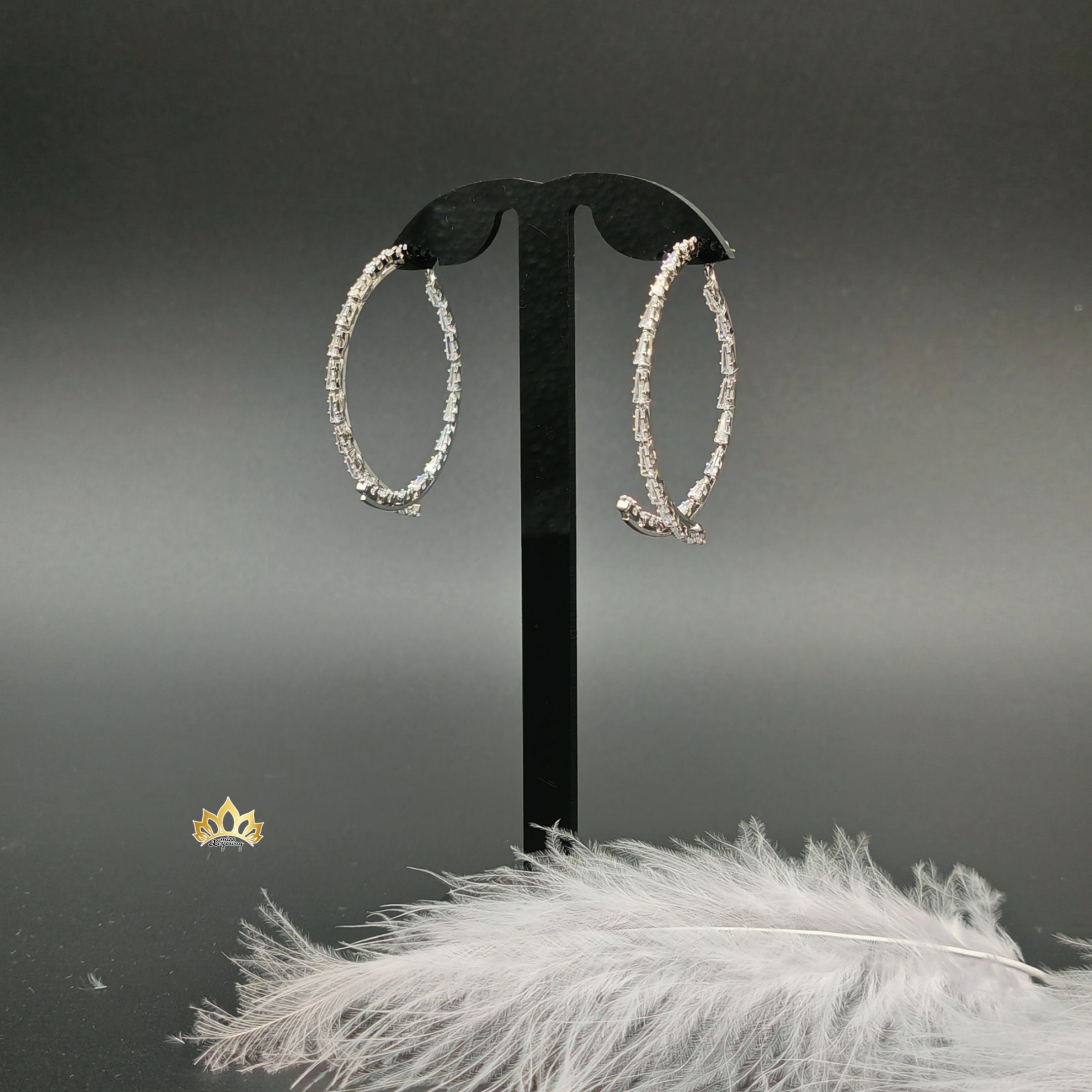 Серьги-полукольца с парящими кристаллами на серебристом металле 4,5см