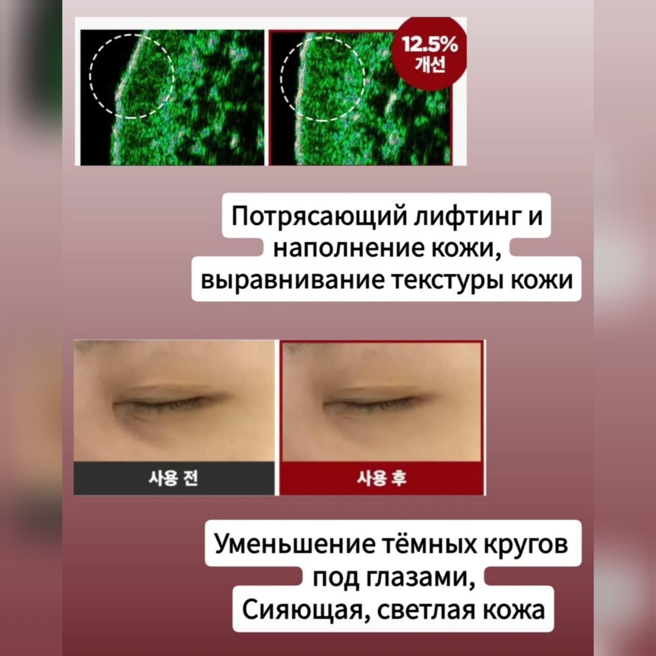 Крем дает потрясающий лифтинг и наполнение кожи, выравнивание текстуры кожи, а также способствует уменьшению тёмных кругов под глазами.